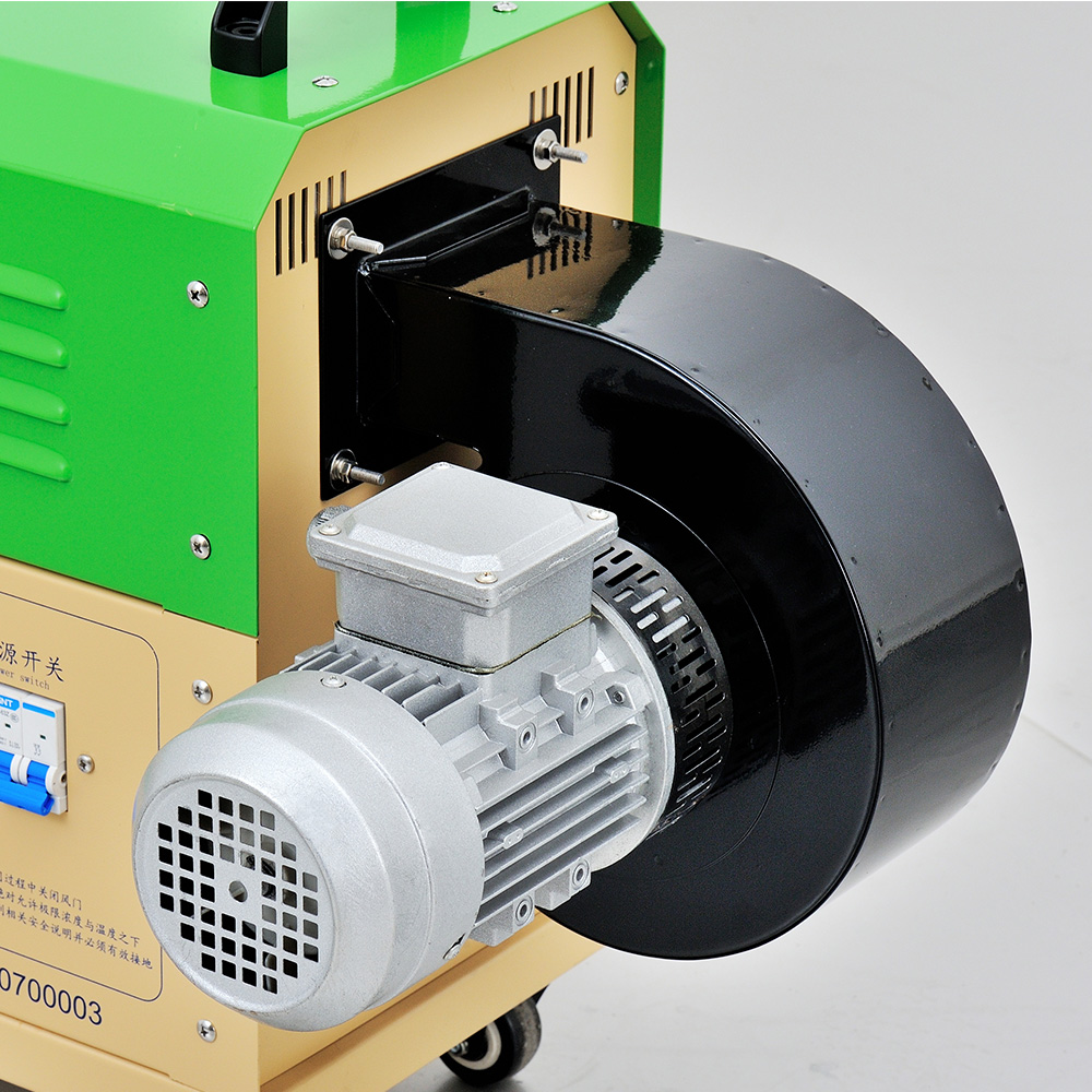 “TSN”工業(yè)熱風(fēng)機(jī)主要由送風(fēng)系統(tǒng)、加熱系統(tǒng)、溫控系統(tǒng)三大部分部分組成。通電后,鼓風(fēng)機(jī)把空氣吹送到加熱器里,令空氣從螺旋狀的電熱絲內(nèi)、外側(cè)均勻通過,電熱絲通電后產(chǎn)生的熱量與通過的冷空氣進(jìn)行熱交換,從而使出風(fēng)口的風(fēng)溫升高。出風(fēng)口處的K型熱電偶及時(shí)將探測(cè)到的出風(fēng)溫度反饋到溫控儀,儀表根據(jù)設(shè)定的溫度檢測(cè)著工作的實(shí)際溫度,并將有關(guān)信息傳遞回固態(tài)繼電器進(jìn)而控制加熱器是否工作。同時(shí),鼓風(fēng)機(jī)可利用風(fēng)量調(diào)節(jié)器(變頻器、手動(dòng))調(diào)節(jié)吹送空氣的風(fēng)量大小。另外,送風(fēng)系統(tǒng)及加熱器,均有過載超溫自動(dòng)保護(hù)裝置,總電路也設(shè)計(jì)了緊急摯,以保證安全,防止錯(cuò)誤操作。
